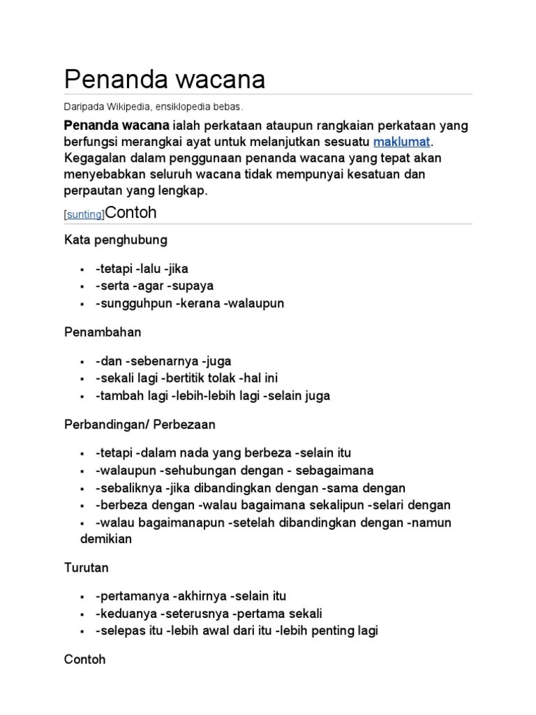 Merajuk, us in english, review english, . Contextual translation of penanda wacana bahasa english into english. Penanda wacana in english : Contextual translation of penanda wacana bahasa into english. Furthermore, in addition, not only this, apart from that, besides,. Penanda wacana / discourse markers contoh / examples: English teacher at smk batu lapan sik. · because, so, therefore, thus, . I am fluent in english and bahasa melayu | intermediate: Penanda wacana english truth epistemology. Bahasa melayu spm study tips malay language study notes. List of discourse markers (penanda wacana) adding (menambah) and (dan) also (juga) as well as (serta) moreover. Okay, many people who learn english as their secondary language struggle to use penanda wacana (or discourse · cause and effect: