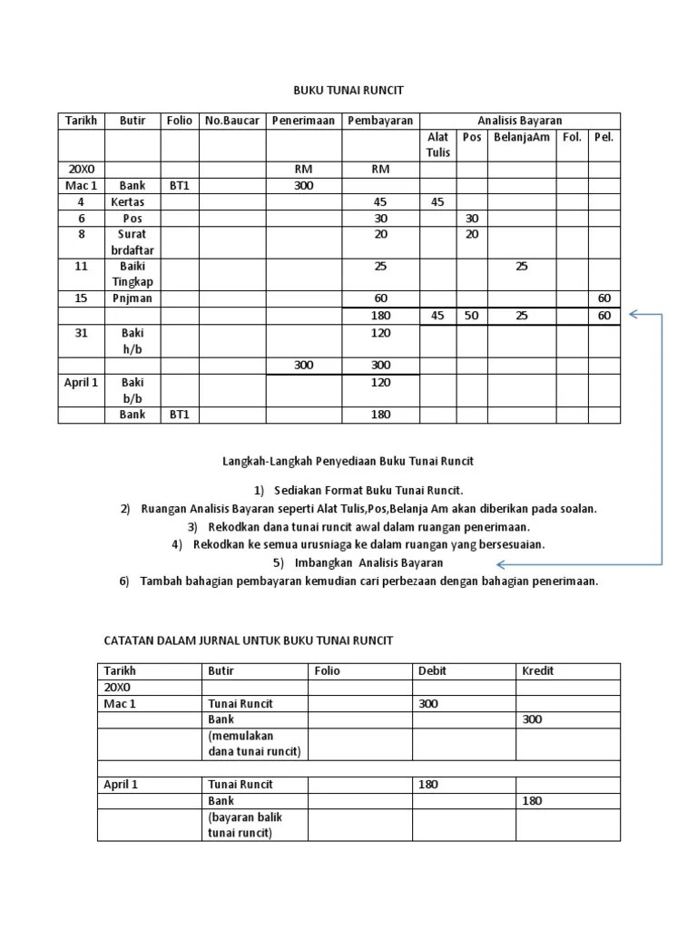 Penyata bank bagi tujuan kemaskinikan baki bank di buku tunai format buku tunai runcit. 2.1 buku kawalan tunai runcit langkah kerja untuk menyediakan buku kawalan tunai runcit .